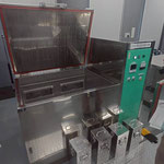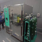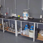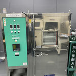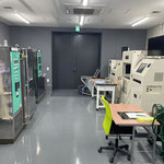 研究棟では、自動の空気量測定機や凝結時間試験機を始め、あまり見ることのない中性化試験機や長さ変化試験機(恒温恒湿の大部屋あり)があったり、骨材の試験室が防音であったりと、最新設備が広々とした空間に備え付けられていました。
